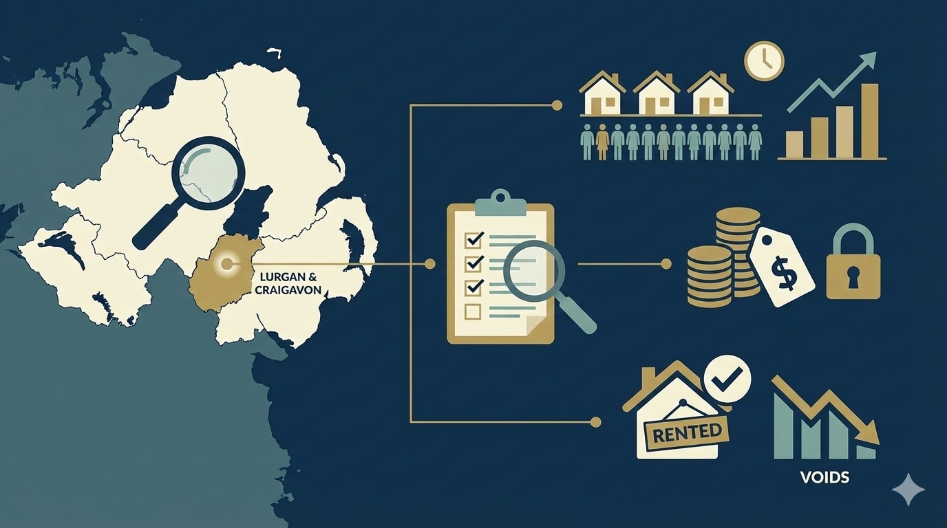 Our focus is on strong rental areas around Lurgan and Craigavon, chosen for consistent tenant demand, affordable purchase prices, sustainable rents and low voids. Each area is assessed on its own merits.