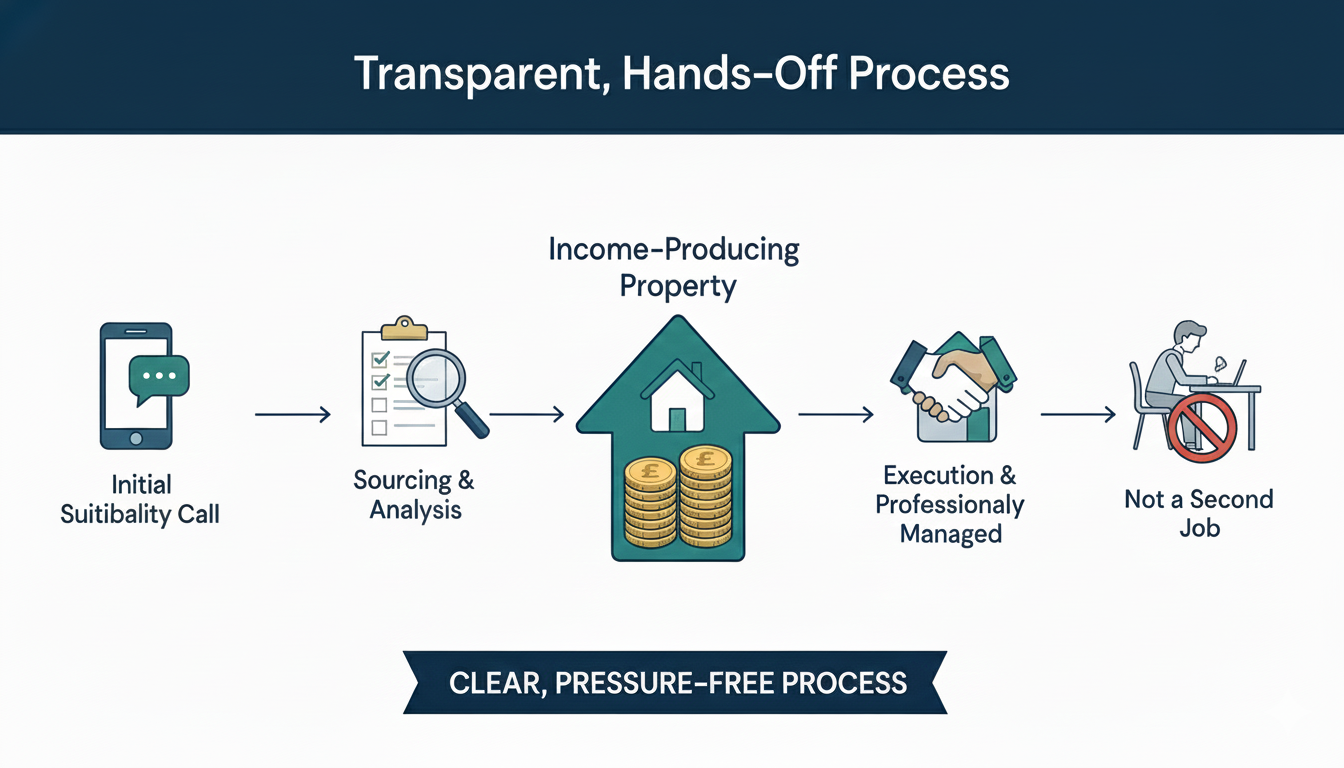 From an initial suitability call through to sourcing, analysis and execution. Everything is clear, pressure free and professionally managed. So you own income producing property, not a second job.
